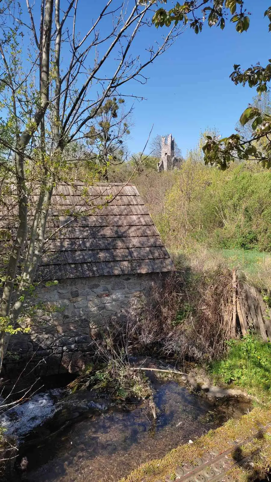Воденица поред моста, са храмом Пресвете Богородице у позадини